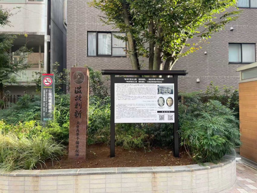 園内には、東亜高等予備学校旧址を示す質素な記念碑が静かに立っている。百年前、若き中国人留学生であった周恩来は、ここで貪欲に新しい知識を吸収し、言語と思想の扉を大きく開いていったのである。